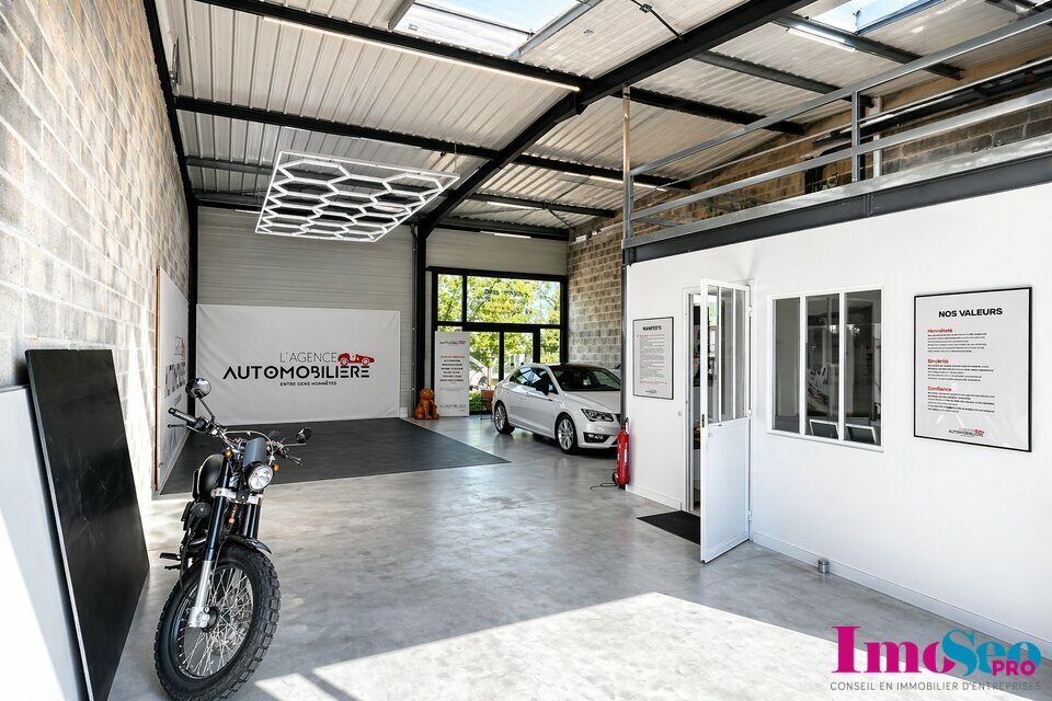 A proximité de la sortie n°25 de la rocade, située sur un axe passant en première ligne. Local commercial à louer d’environ 127m² comprenant un bureau entièrement aménagé d’environ 20m² avec sanitaire, et 20m² de mezzanine. HSP 5,50 mètres, équipé d’une porte sectionnelle 3.50 x 3.50 mètres et d’une vitrine donnant sur l’axe. Stationnement en façade.